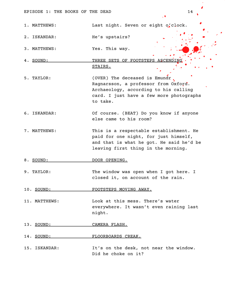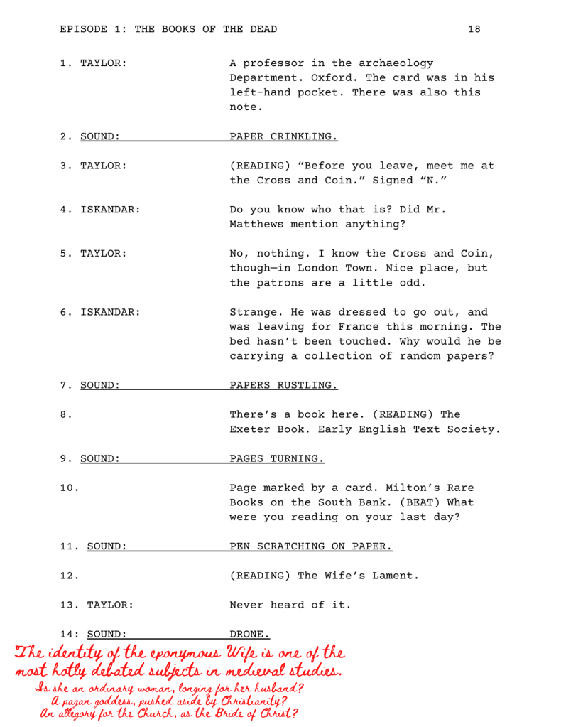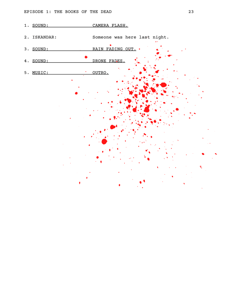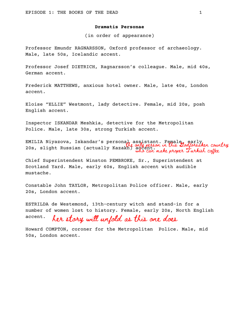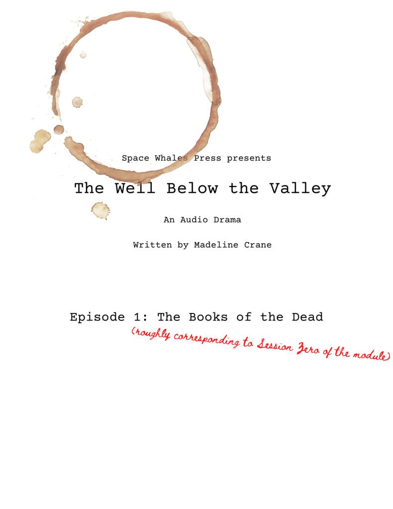 It’s finally here! The script for the first episode, “The Books of the Dead,” is available as a PDF download on Patreon. If you’re not a subscriber, it’s only $3 a month. Currently, Patreon is the only place to find this particular project.