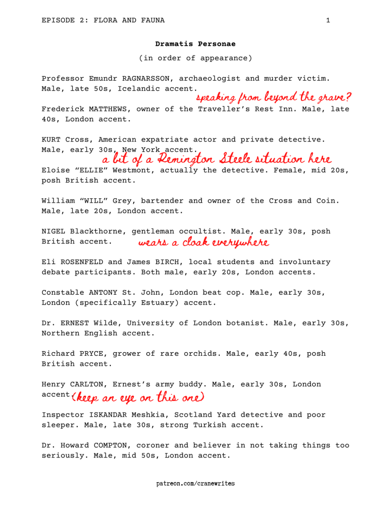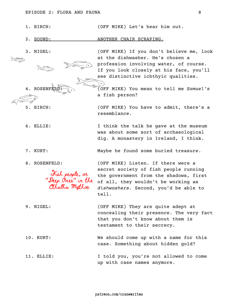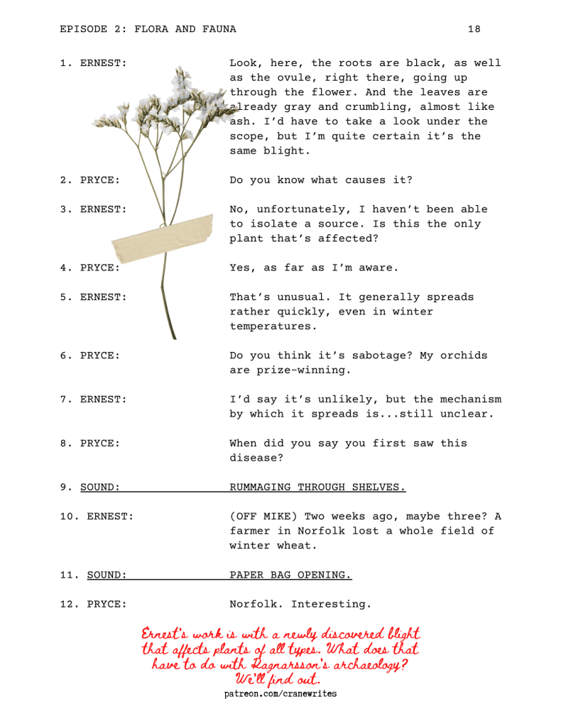 Once again, this is a script for a ~20-minute episode of an audio drama I hope to one day produce. It is annotated with explanations of references, foreshadowing, and a few illustrations just for fun. It is available only on Patreon, but a free preview is below the cut: