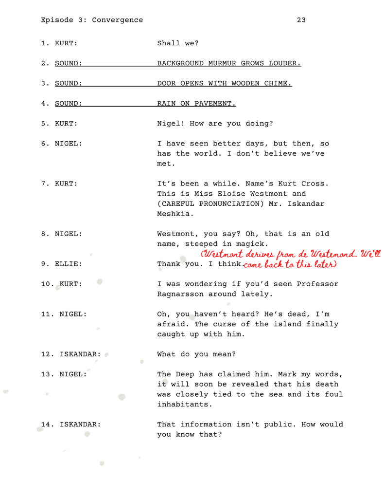 “The Deep has claimed him. Mark my words, it will soon be revealed that [Professor Ragnarsson’s] death was closely tied to the sea and its foul inhabitants.”