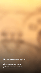 I didn’t have time to scan/render this one, but here’s a pencil sketch of a temple built into the side of a cliff and a giant robot skeleton embedded there. As always, my Patreon is only $3 a month, and you get access to early chapters and bonus art. Plus, you get to support an independent creator and keep her cats happy.