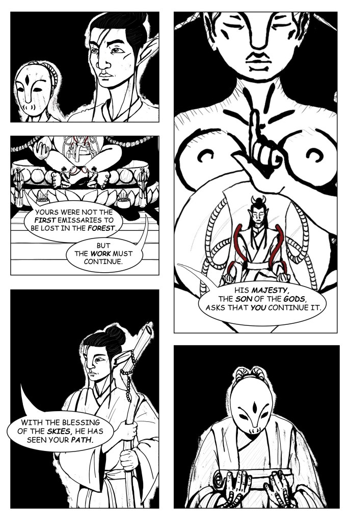 Second Priest (off-panel): With the blessing of the skies, he has seen your path.